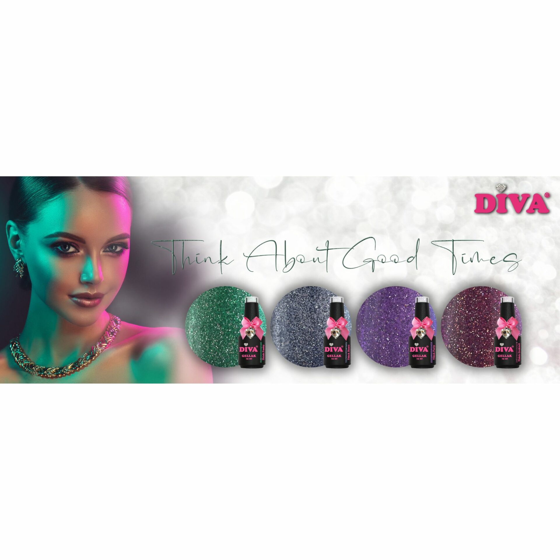 Diva Gellak Diva’s Think About Good Times Collection zijn super gave unieke kleuren. Ze hebben een groot assortiment aan hoogwaardige kwaliteit gellak kleuren. Zoek jij gellak met een groot kleuren assortiment? Wil jij een gellak in je nagelsalon die gemakkelijk aanbrengt? Door het self leveling systeem loop de soak off gelpolish mooi in elkaar over, hierdoor kun je gemakkelijker prachtige nagels creëren. Daarbij is de Diva Gellak in een goede prijsklasse. Daardoor is Diva Gellak betaalbaar voor de meeste nagelstylistes.