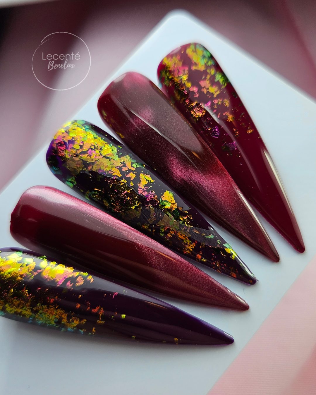 Flakes zijn naar mijn mening de mooiste en veelzijdigste glitters. Ze zijn super dun van structuur en je kunt er ontzettend gave nailart mee creëren. Je kunt inpoetsen op de nagel als een chrome effect en veranderen van kleur op iedere lichte en donkere ondergrond. Nail Flakes zijn niet goedkoop, maar als je kijkt wat je voor terug krijgt met deze prachtige Lecenté Flakes, dan begrijp je helemaal wat ik bedoel. De structuur van de glitter flakes blijft zichtbaar, terwijl het oppervlak glad aanvoelt. In kwaliteit ga je zien dat Lecenté het echt waard is!
