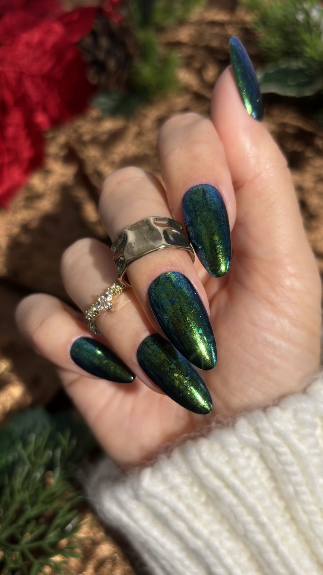 – dunne platte blue in green chameleon glitters met aqua, teal, en gold ondertonen