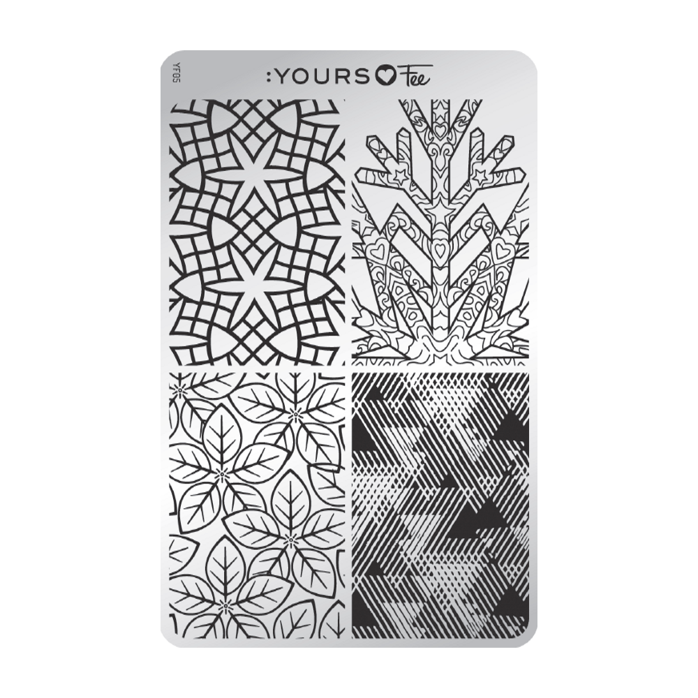 De Yours Stamping plates zijn van top kwaliteit. Ze zijn precies diep genoeg uit gegraveerd om je design goed te kunnen op pakken. Daardoor zijn alle fijne designs zoals kleine lijntjes, stipjes, ect. duidelijk zichtbaar. De combinatie van deze stempelplaten, met de Yours Halo Stamper en de Colour Alike stempellaken, kun jij jou perfecte design creëren.